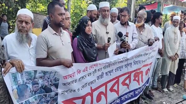 সিলেটের আদালত প্রাঙ্গনে মব সৃষ্টি পরিকল্পিত হামলার প্রতিবাদে মানববন্ধন