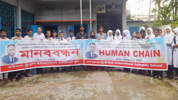 এসময় মানববন্ধনে উপস্থিত ছিলেন, বৃটিশ ইন্টার ন্যাশনাল কলিজিয়েট স্কুলের পরিচালক নুরজাহান আক্তার লাকী, সহকারী শিক্ষক আনিছা আক্তার, উষা আক্তার, নাইম ইসলাম, অরনাব দেব, হোসাইন আহমদ সহ প্রতিষ্ঠানের সাবেক ও বর্তমান শিক্ষার্থীরা।